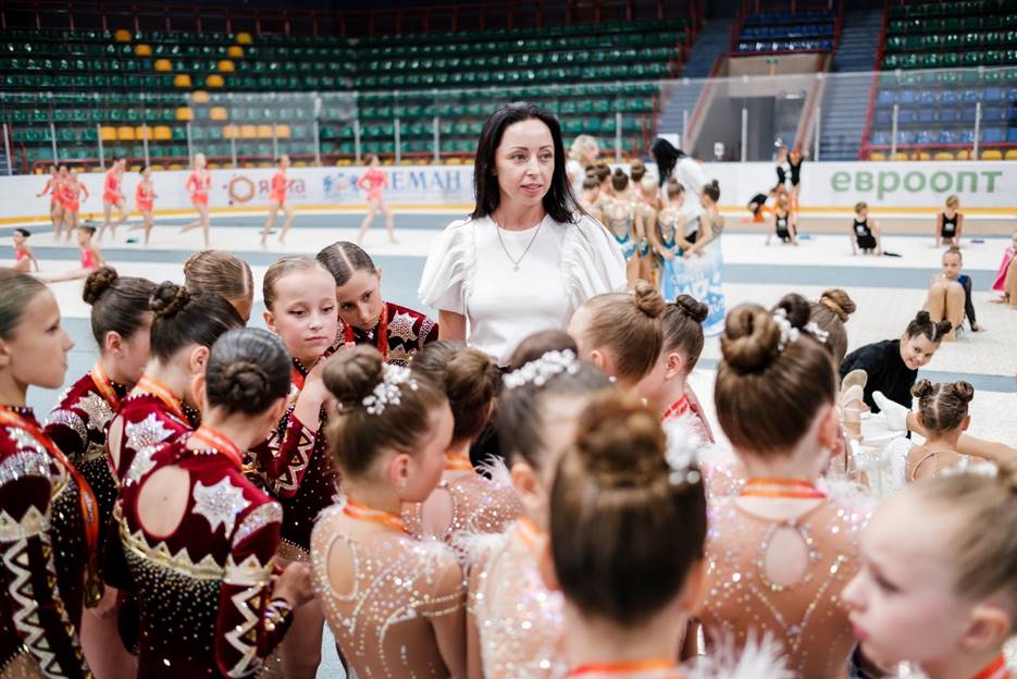 На фото: Буянова Оксана Александровна - Мастер спорта по художественной гимнастике, тренер клуба эстетической групповой гимнастики «ВЕНЕРА», Председатель ОО «Гродненская федерация эстетической групповой гимнастики», Гродно