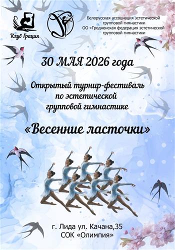 Приглашаем Вас принять участие в турнире и фестивале "Весенние ласточки - 2026", который состоится 30 мая 2026 г. в СОК "Олимпия" по адресу: г. Лида, ул. Качана, 35